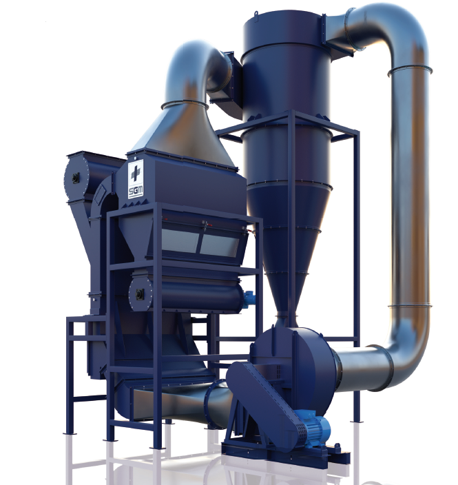 在涡流分选机之后及传感器类分选机之前,使用SGM公司的空气分选机,可以给智能感应分选机供应更理想的材料,从而提高不锈钢和铜线的纯度。经由SGM公司的空气分选机的重料阀选出来的包括铜线的金属,重量上占比超过涡流分选机尾料的60%, 但是体积上占比小于50%。